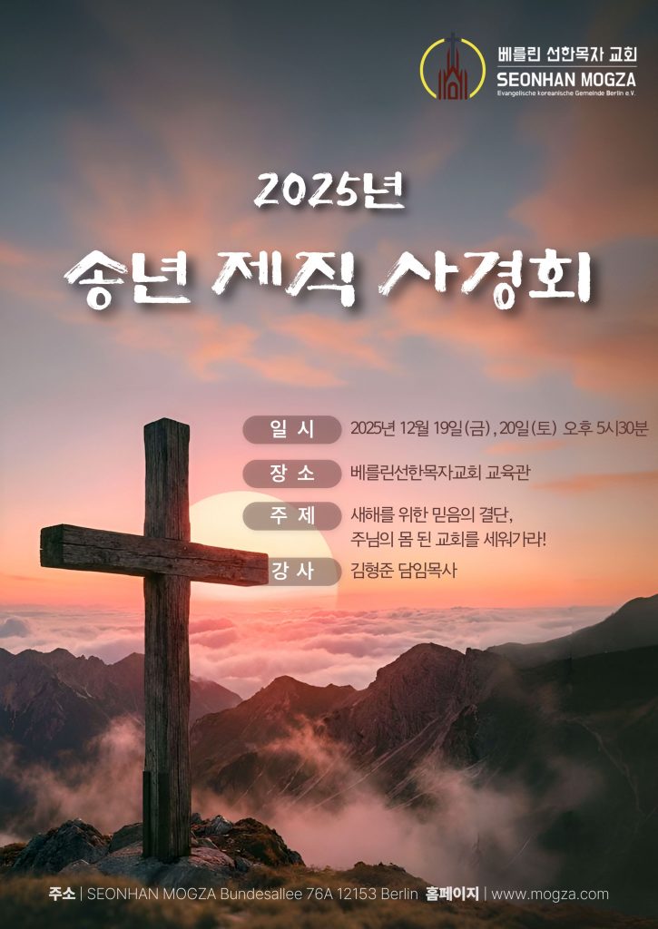 수요예배: 오후 5시, 금요청년예배: 오후5시30분, 토요기도회: 오전 8시, 청년부 모임: 주일 예배 후, 주일학교: 주일 12시 30분